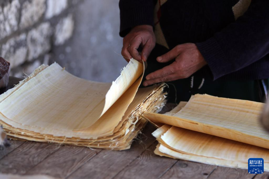 今年50歲的賽義德從事紙莎草紙的制作已有35年,從孩提時代,制紙便成為他生活的一部分。據他介紹,以前村里幾乎家家戶戶制紙,村民以制紙為生,但因時局動蕩、疫情及收入低等原因,很多人放棄了這門手藝。目前村里制紙的家庭僅剩不到20戶。
