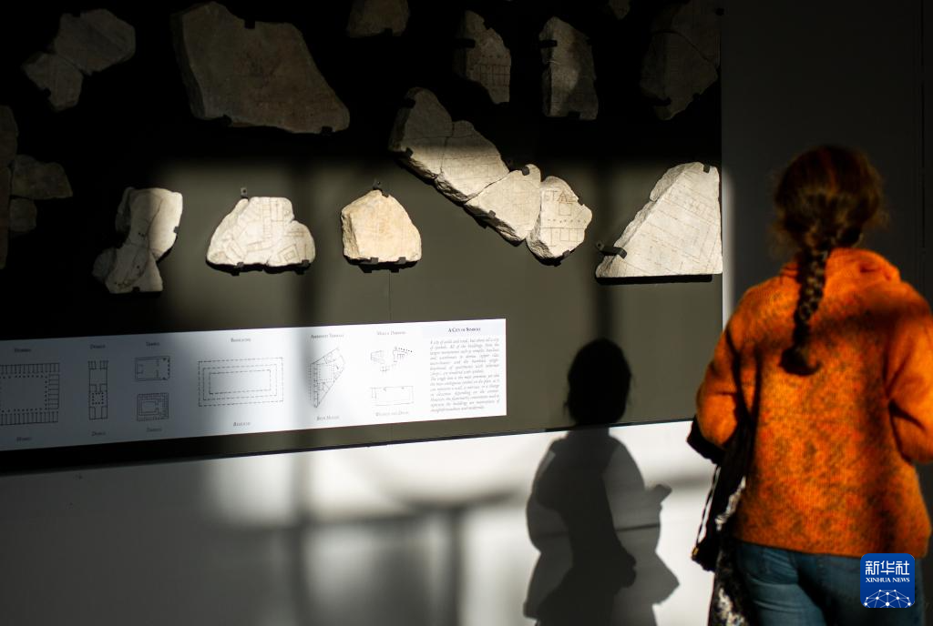 1月16日,在意大利羅馬的一處古羅馬主題博物館,參觀者觀看展出的古羅馬大理石地圖殘片。