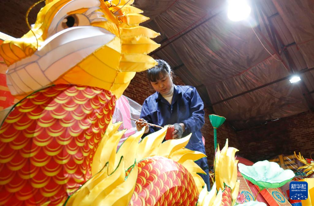 1月18日,工人在河北省邢臺市南和區史召鄉一家節慶飾品作坊趕制燈籠。