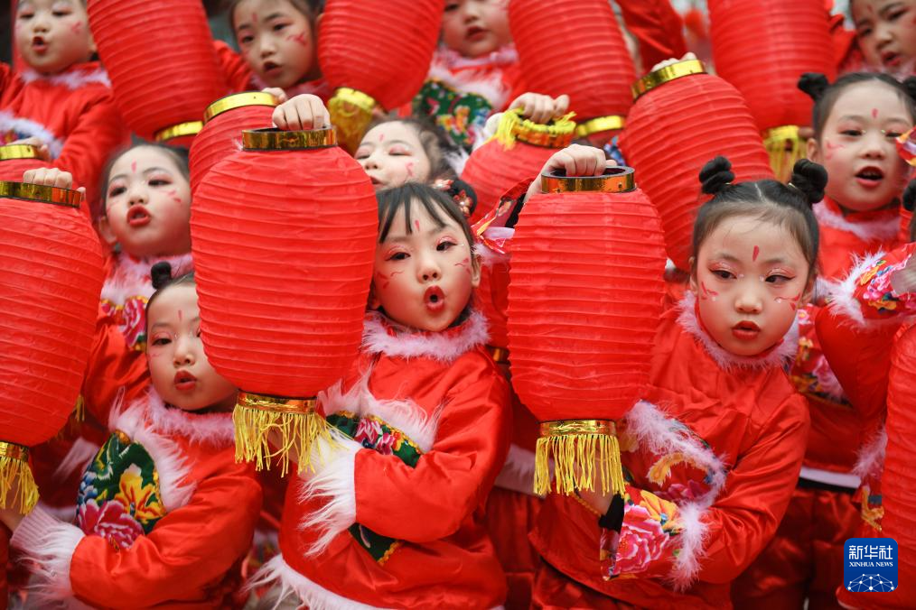 1月18日,四川省閬中市閬中古城,民間藝人和文藝工作者在表演節目歡度臘八節,喜迎農歷新年。這是參演的小朋友在表演。