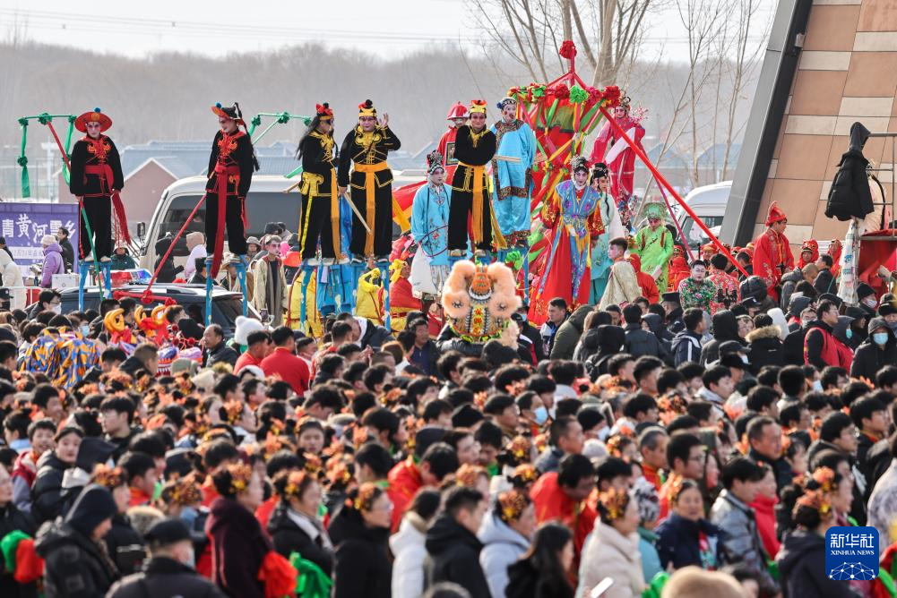 1月18日,在山東省淄博市高青縣舉行的山東鄉村文化旅游節啟動儀式現場,當地居民在觀看民俗表演。