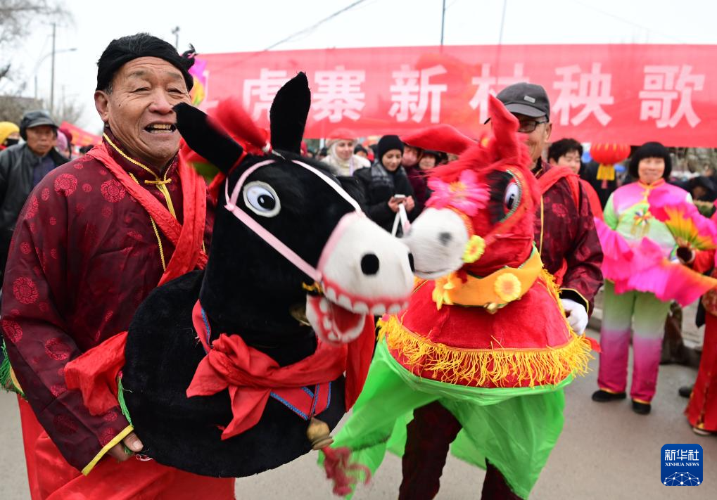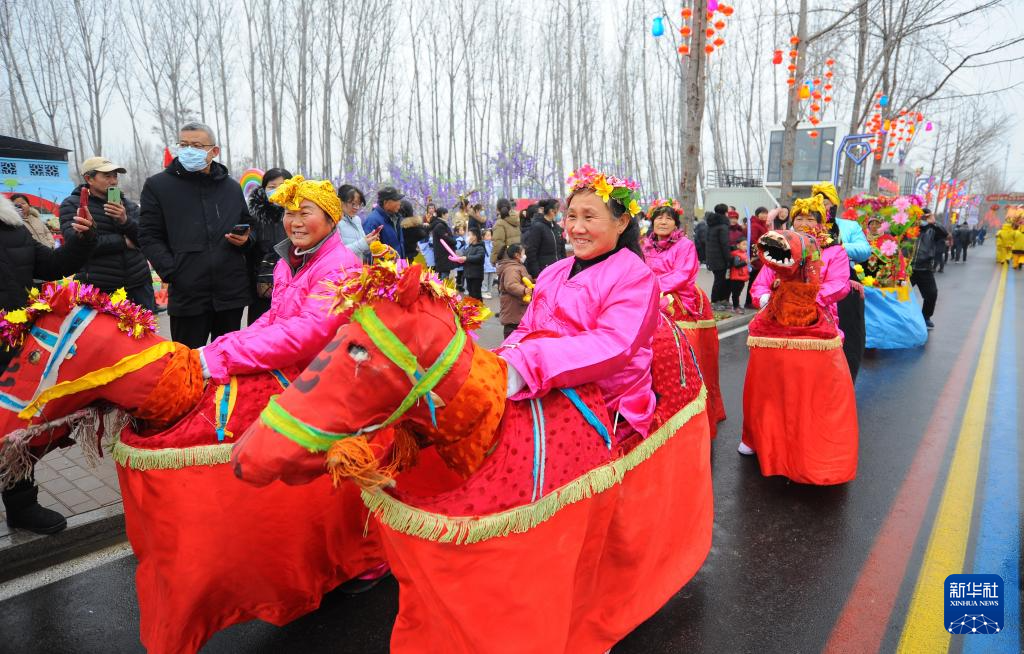1月18日,山東省聊城市東昌府區堂邑鎮民間文藝表演隊在表演跑毛驢。