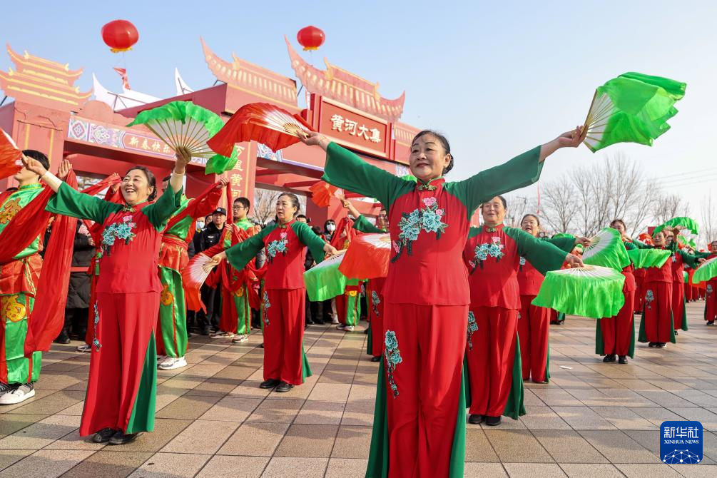 1月18日,在山東省淄博市高青縣舉行的山東鄉村文化旅游節啟動儀式現場,當地居民在表演節目。