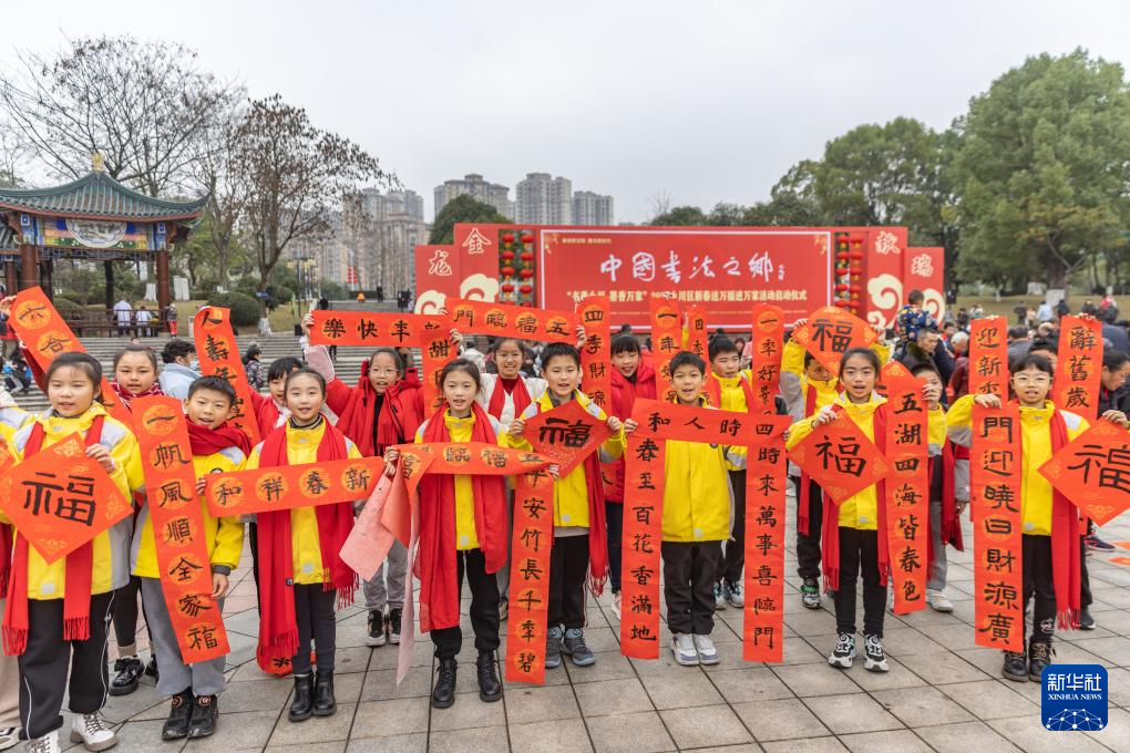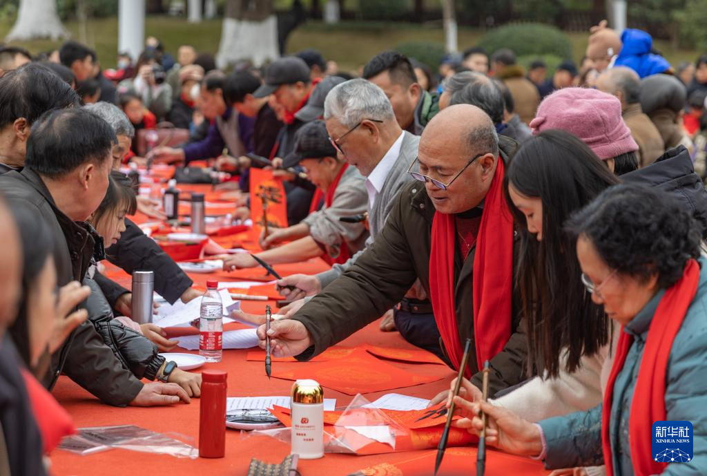 1月18日,重慶市永川區舉辦“書香永川·墨香萬家”為主題的新春送萬福進萬家活動,組織當地書法家、民間文藝家及部分學校師生現場書寫春聯、寫福字、做剪紙,并將其免費贈送給廣大市民。