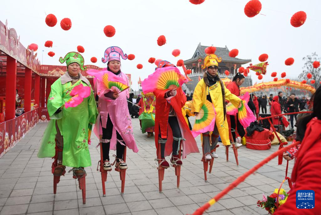 1月18日,在山東省臨沂市郯城縣馬頭鎮,演員在首屆郯馬土特產文化節活動現場進行年俗表演。