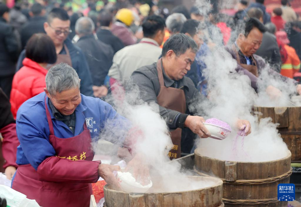 1月18日,浙江省湖州市德清縣禹越鎮高橋村舉辦第三屆年高(糕)文化節,村民與游客一起打年糕、做糕粉、看表演,感受江南水鄉民俗氛圍。