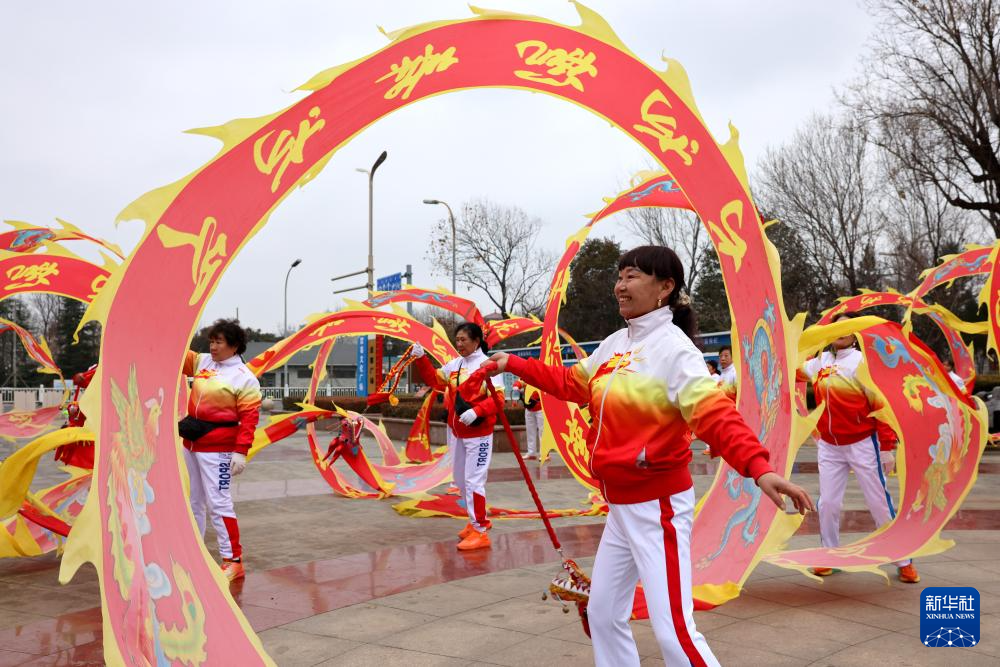 1月18日,在山東省棗莊市西沙河公園,市民在舞“彩龍”慶臘八、迎新春。