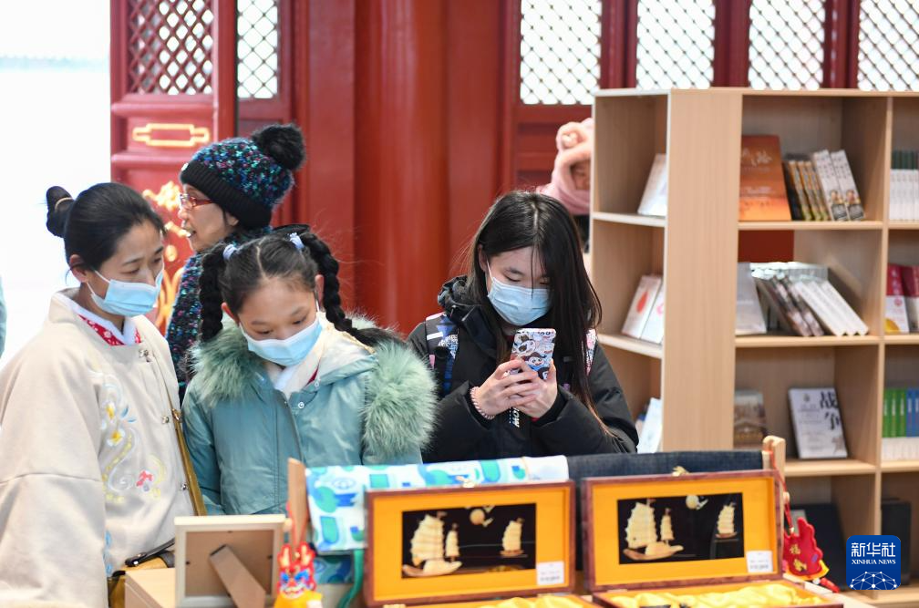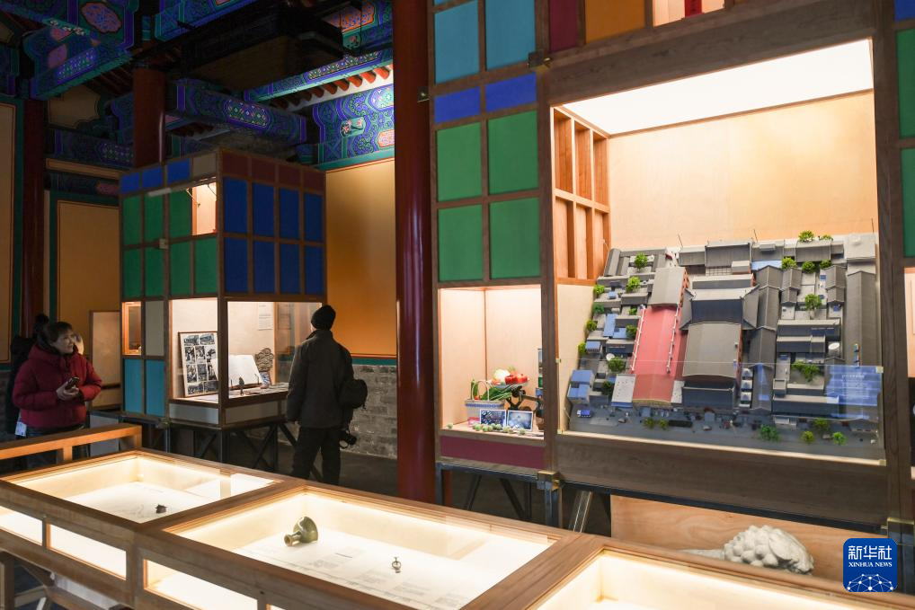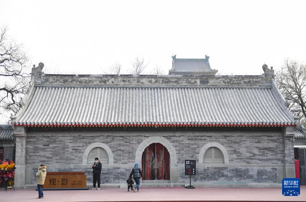 1月18日,人們在宏恩觀大雄寶殿內觀看“宏恩觀:一座北京廟宇的故事”主題展覽。