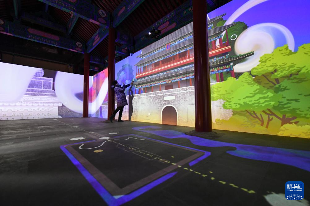 這是1月18日拍攝的宏恩觀山門殿里的“山門來吧”數字藝術館。