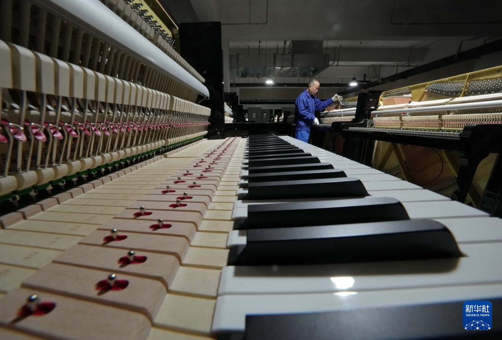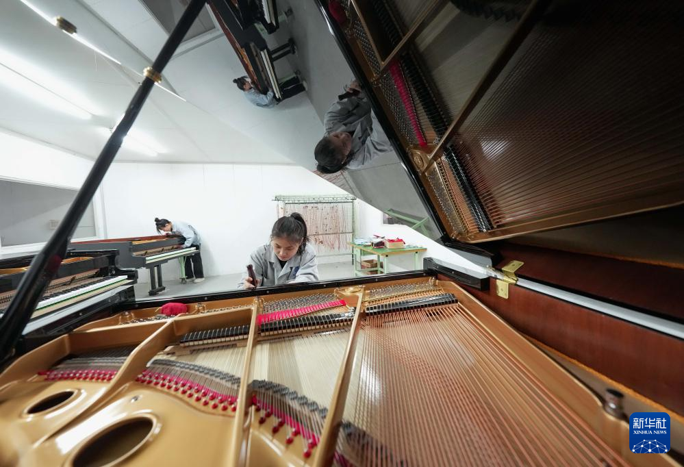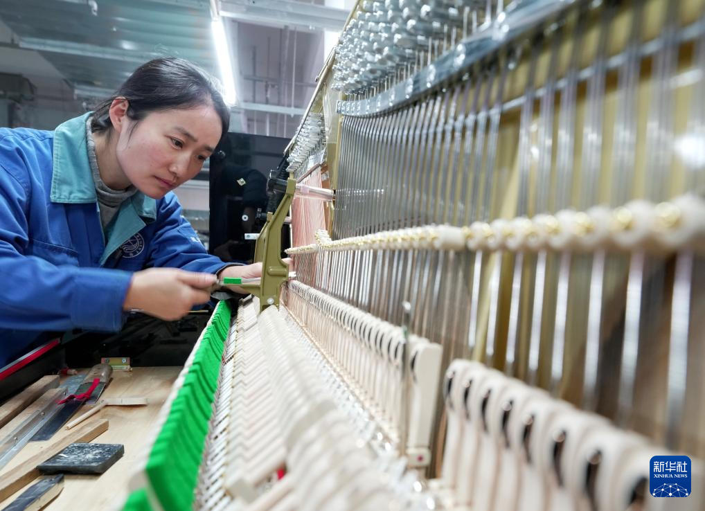 1月19日,工人在河北省肅寧縣一家鋼琴企業的生產車間工作。