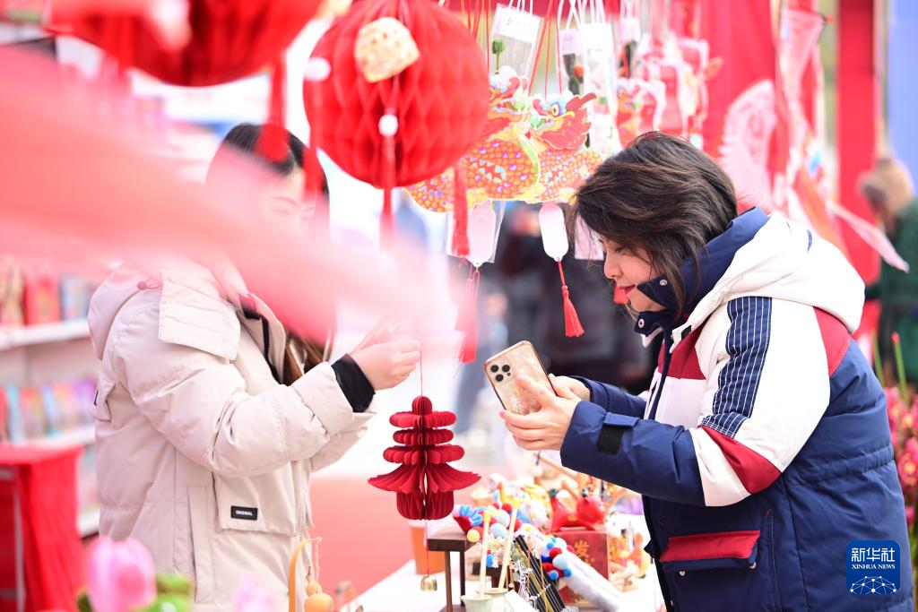 1月20日,市民在江蘇省淮安市金湖縣的年貨集市上選購春節飾品。