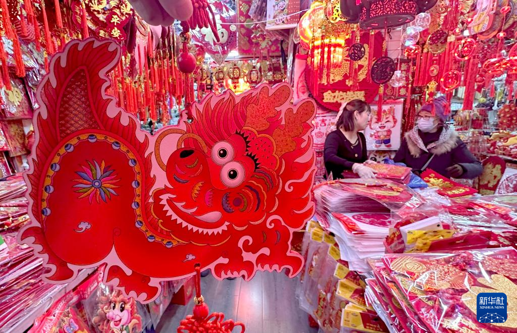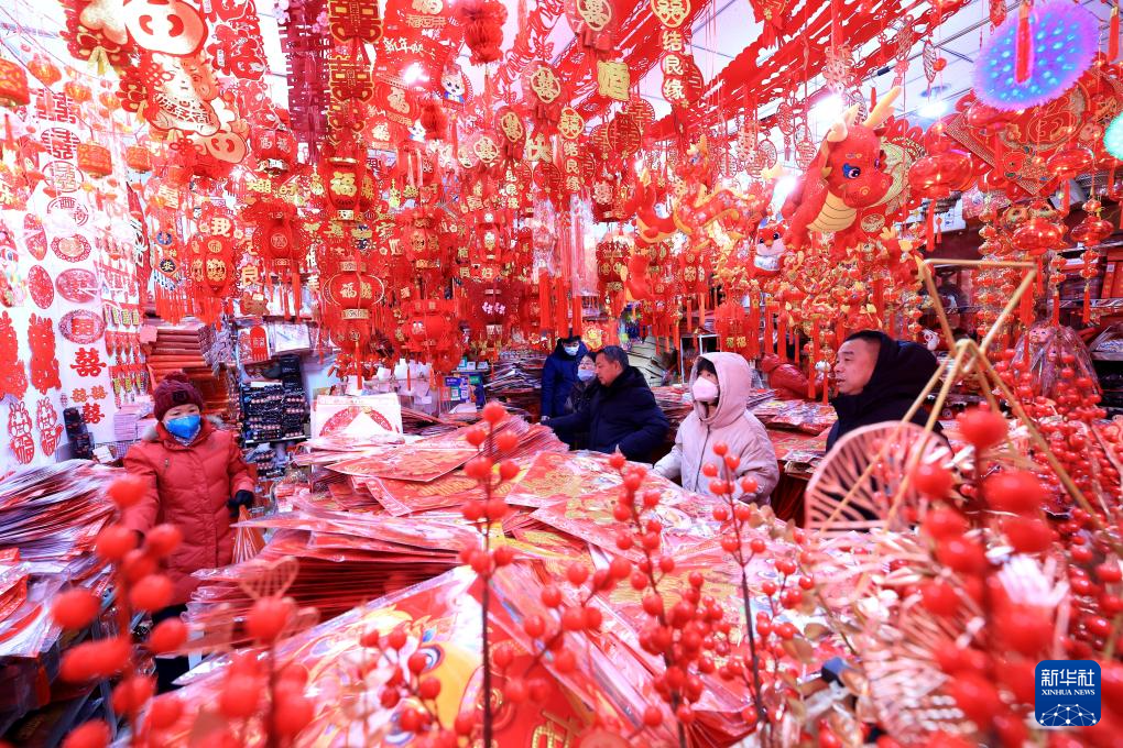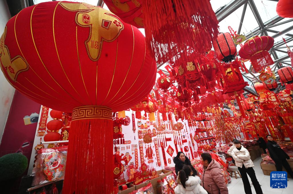 1月20日,人們在河北省石家莊市南三條年貨批發市場選購春節飾品。
