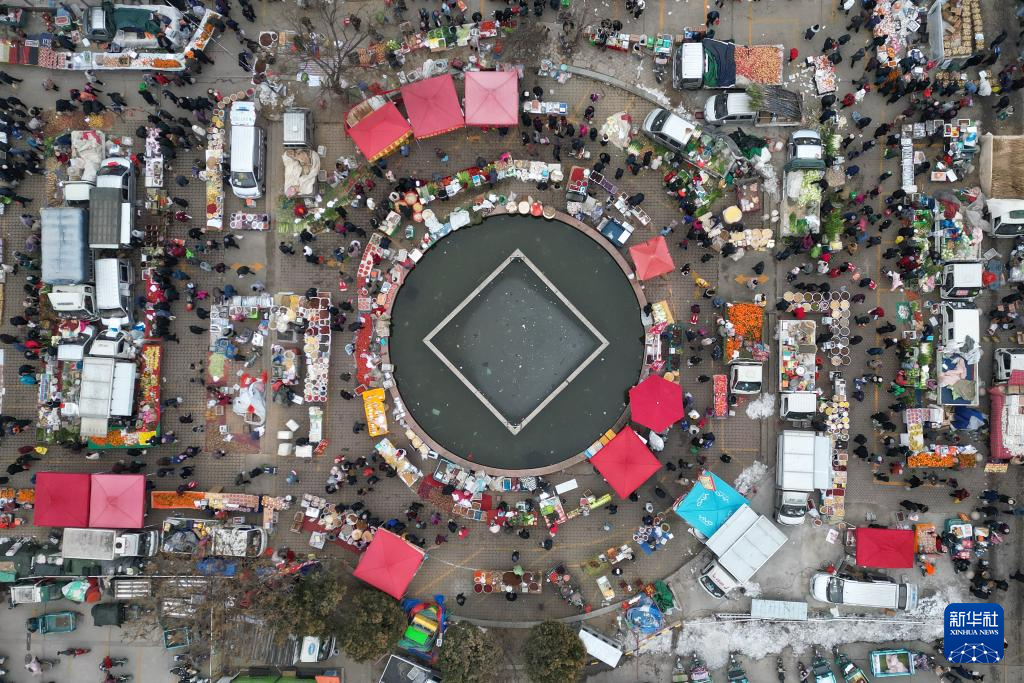 1月20日,在貴州省貴陽市開陽縣云開廣場,人們在年貨節活動上選購商品。