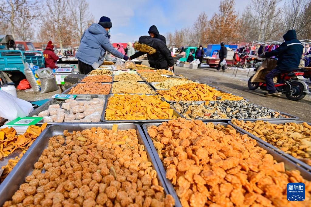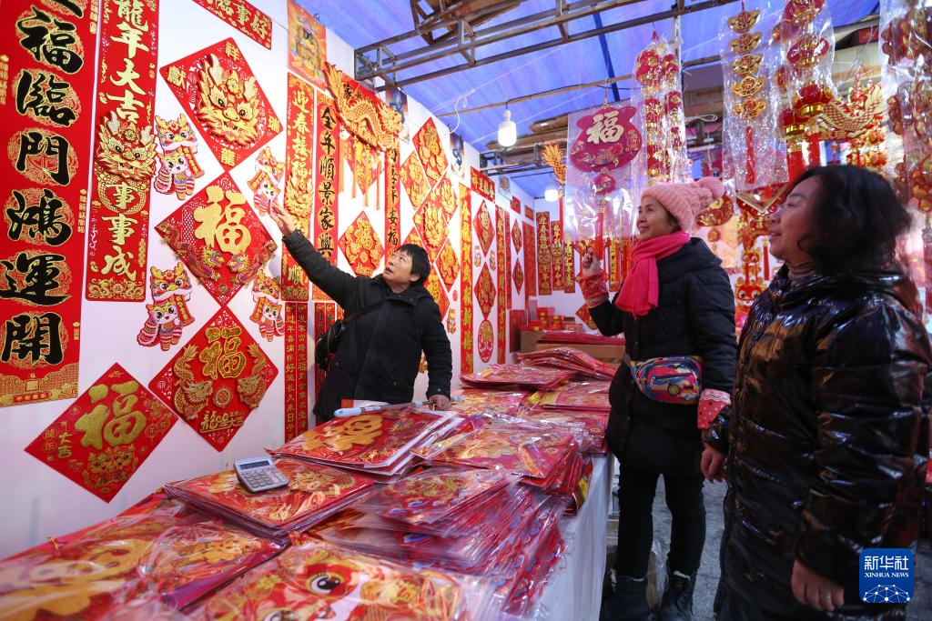 1月22日,人們在山東省青州市云門山街道一家集貿市場上選購年貨。