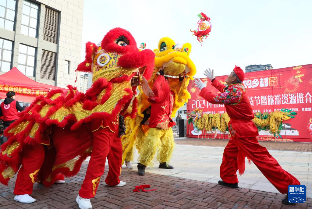1月22日,人們在安徽省合肥市肥西縣山南鎮南山苑廣場舞獅。