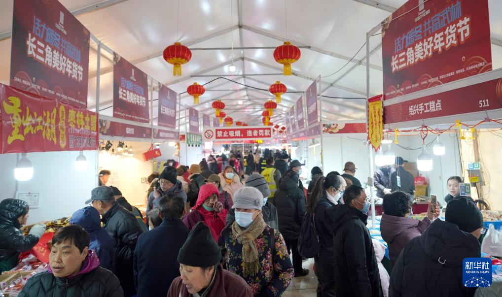 1月22日,在杭州西湖文化廣場,市民在“長三角美好年貨節”上選購商品。