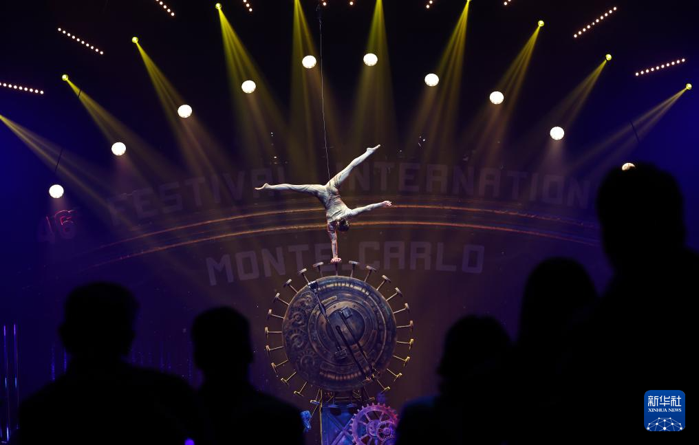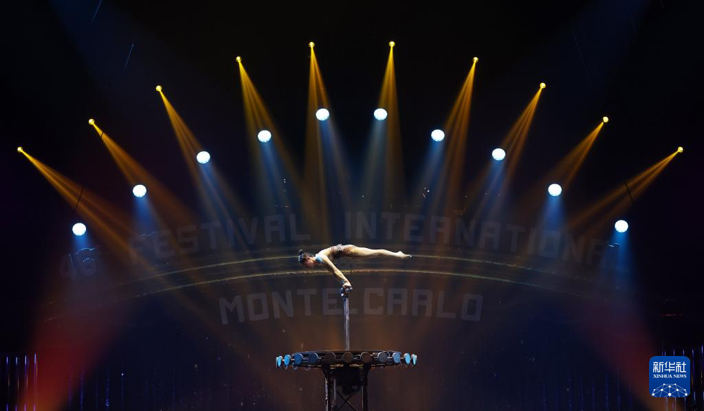1月20日,中國江蘇省雜技團演員王夢塵在摩納哥蒙特卡洛表演節目《煉——倒立技巧》。