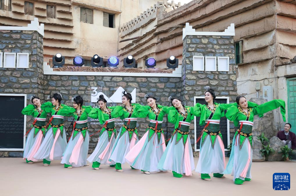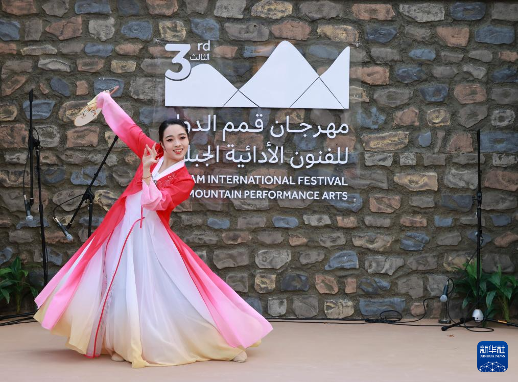 1月21日,中國舞蹈演員在沙特阿拉伯西南部阿西爾地區舉辦的第三屆沙特奎馬姆國際山地表演藝術節上表演。