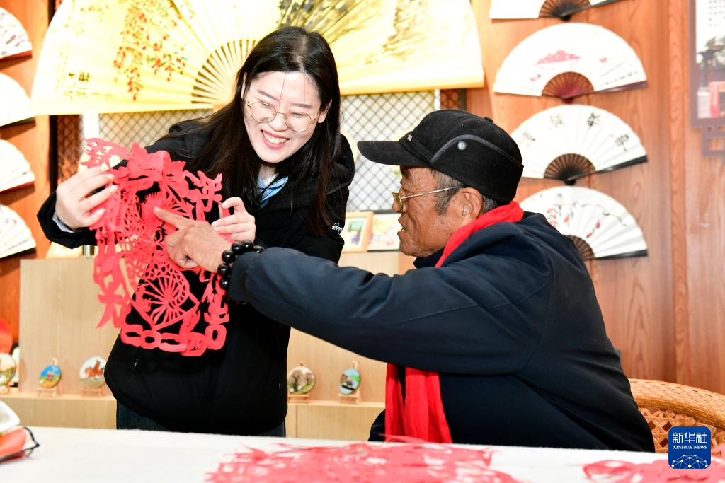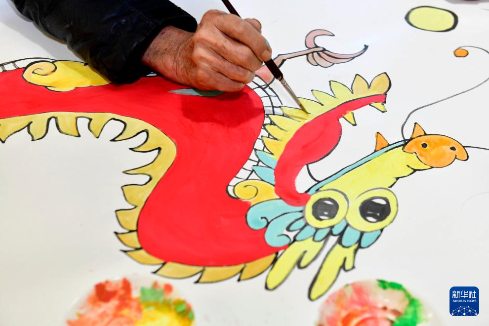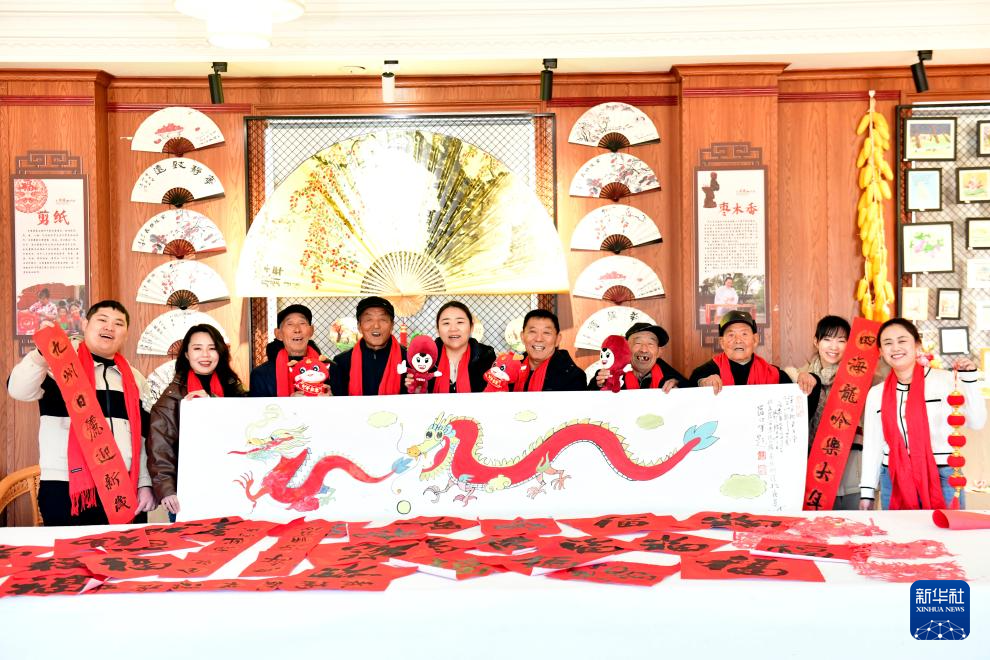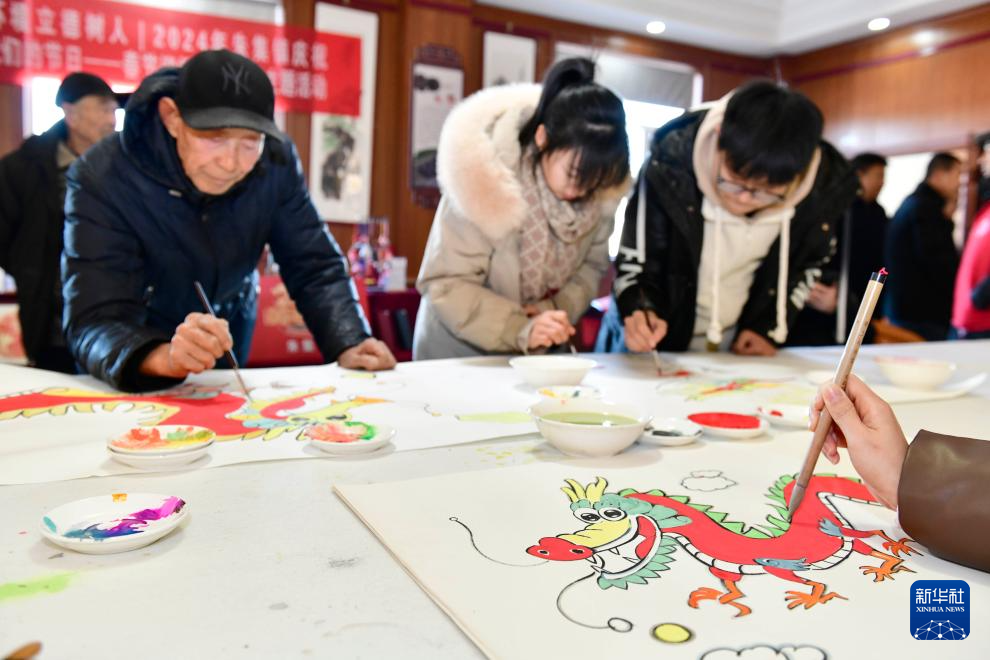 當日,山東省樂陵市組織農民畫畫師、剪紙老師、書法老師等文藝志愿者來到朱集鎮,創作“龍”元素賀歲作品,迎接農歷龍年的到來,為群眾送上新春祝福。
