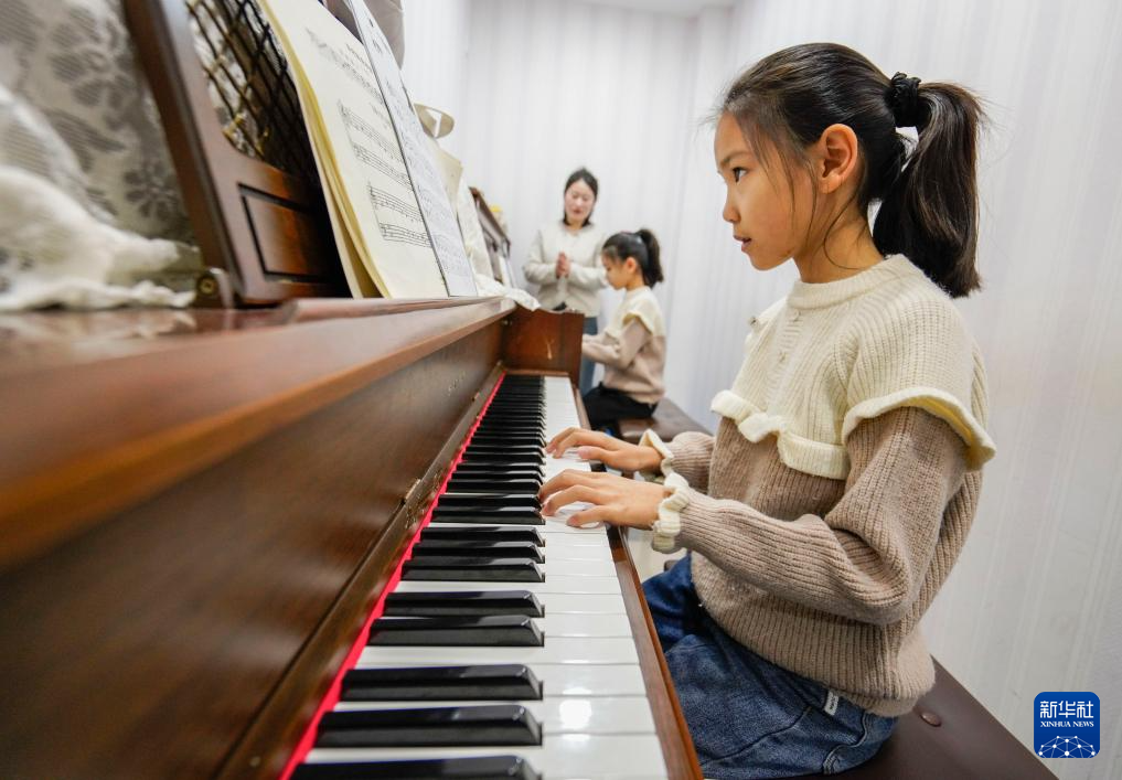 1月23日,學生在河北省遵化市一家培訓機構學習演奏鋼琴。