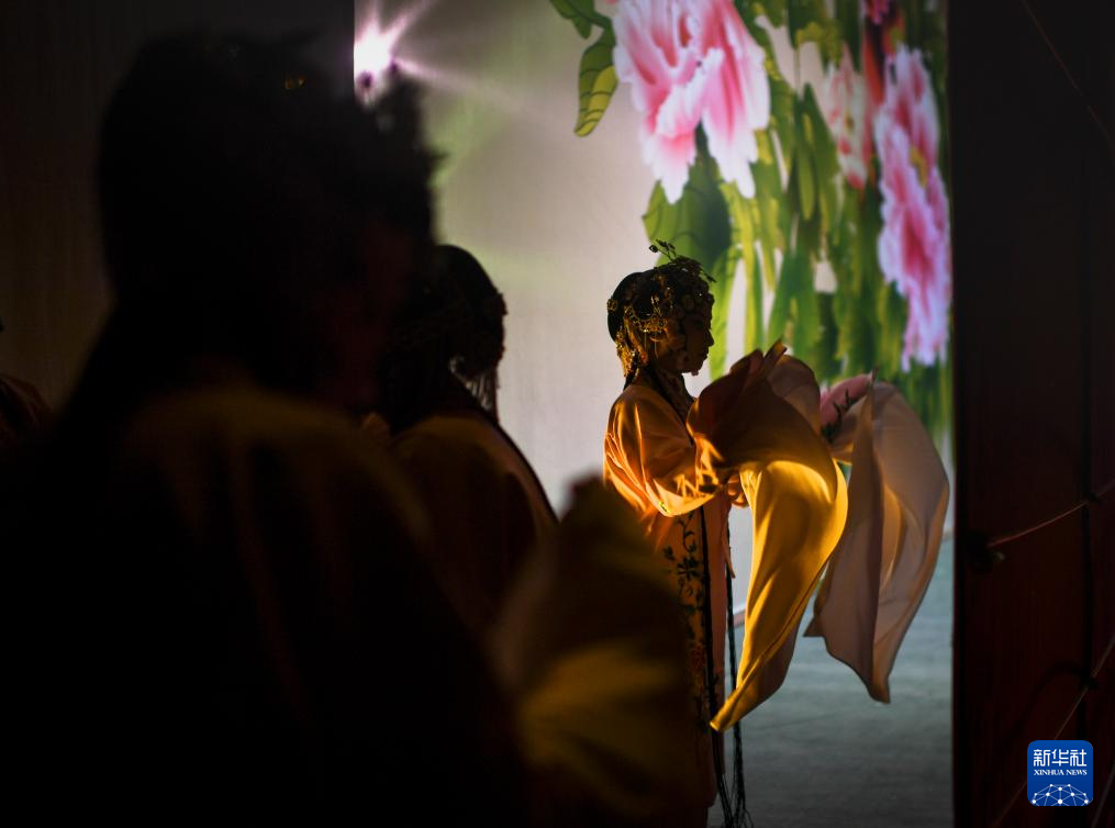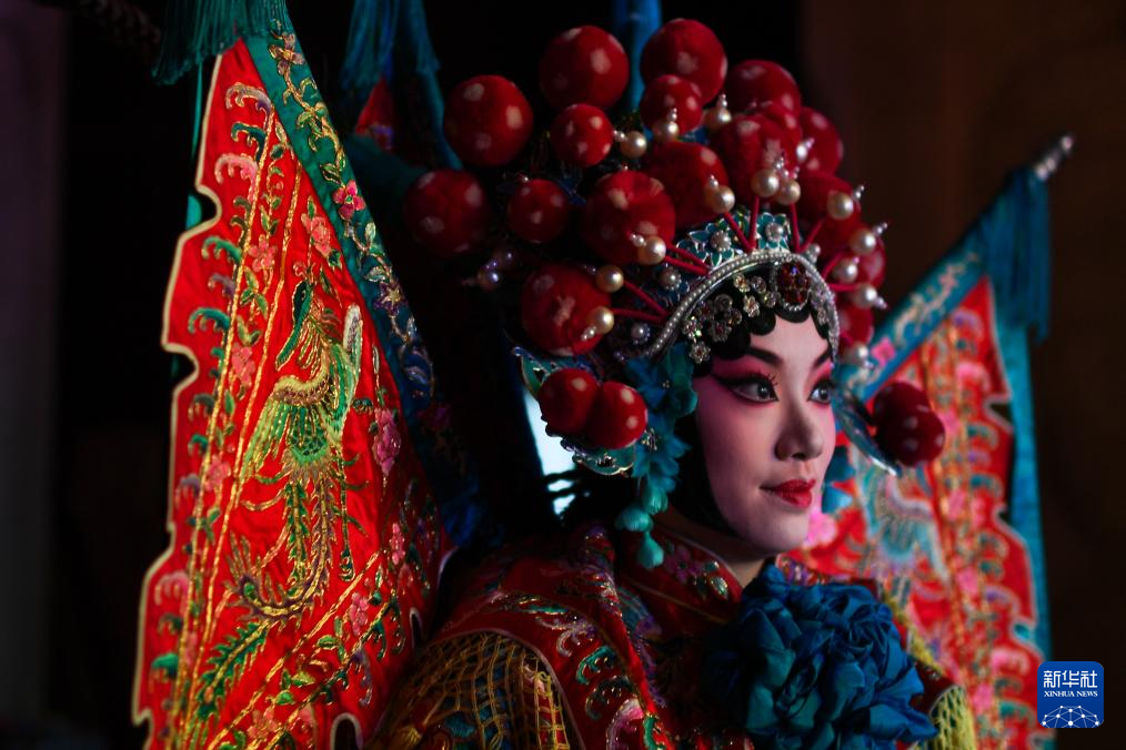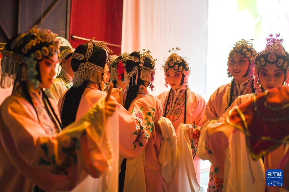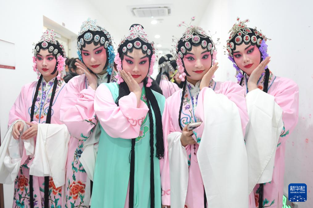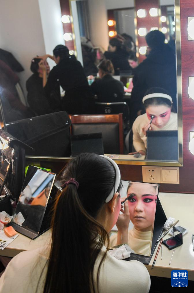 在后臺的化妝室里,一群“00后”年輕演員進行著演出前的最后準備,調整妝容、戴好釵環,氛圍略顯緊張,又笑聲不斷。