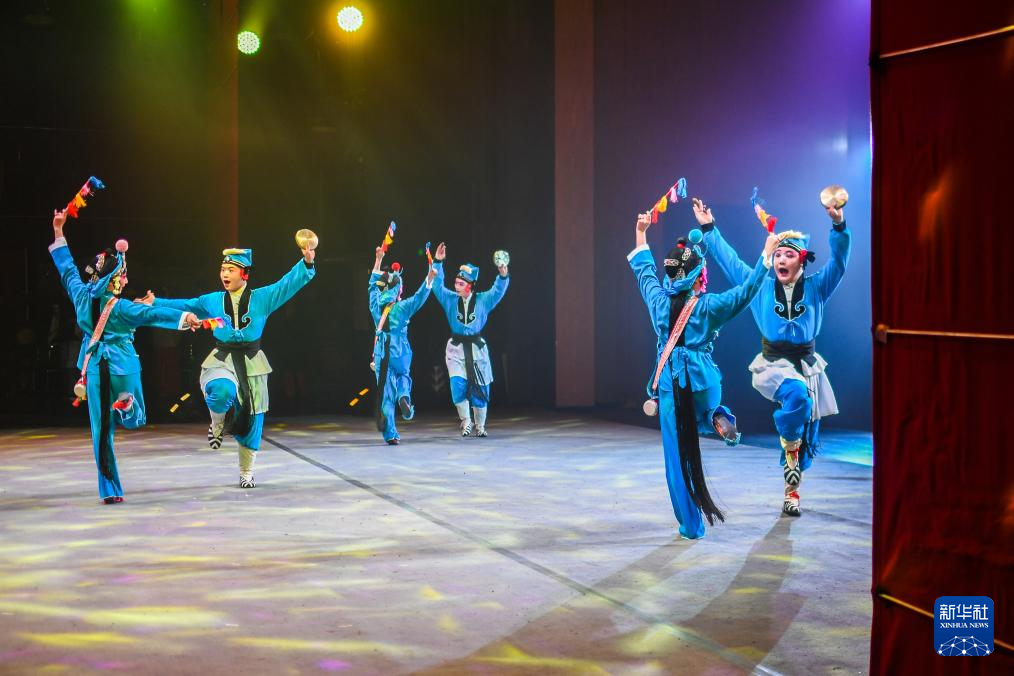 1月23日,漢劇演員黃瑛琪(右一)在舞臺上演出。