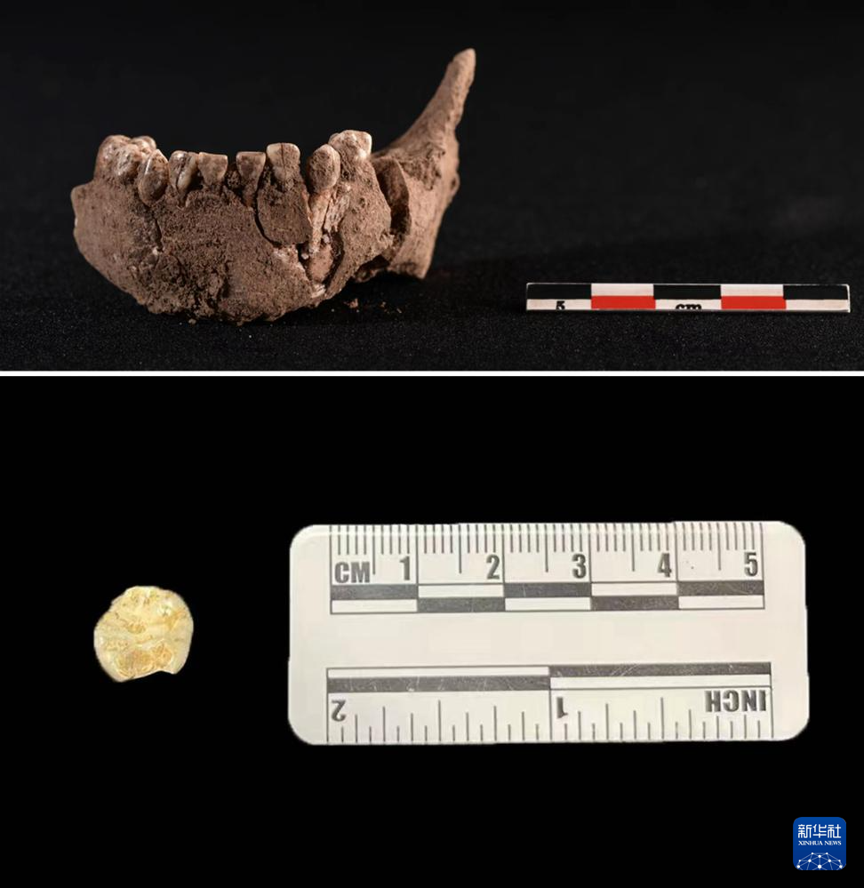 拼版照片:這是貴州普定穿洞遺址考古現場出土的人類下頜和牙齒考古標本(資料圖片)。
