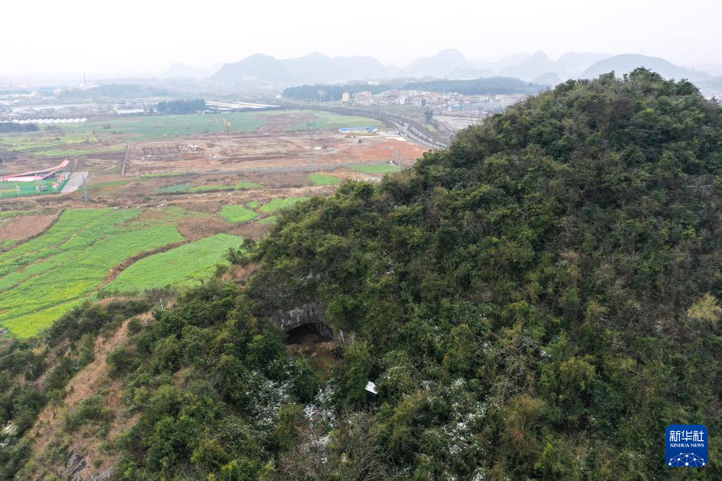 這是1月24日拍攝的貴州普定穿洞遺址北洞口(無人機照片)。