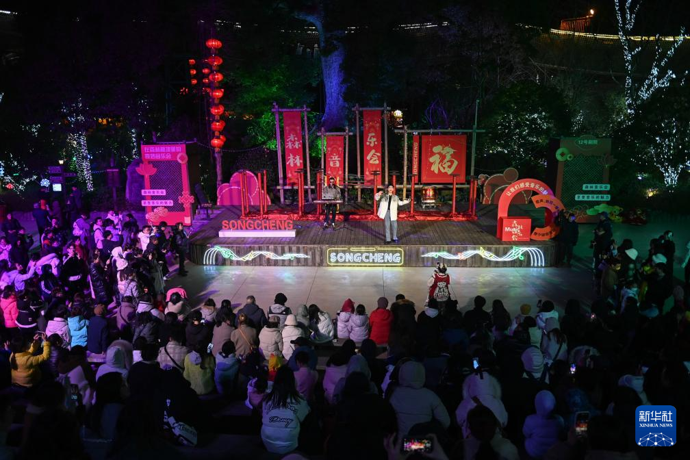 1月27日,游客在杭州宋城景區觀看“森林音樂會”表演。
