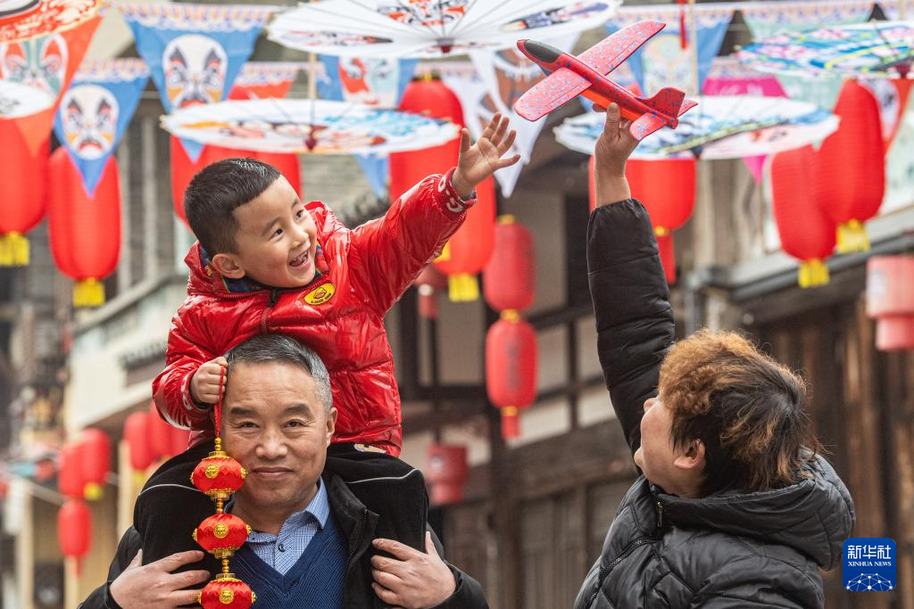 1月30日,居民在重慶市大足區雍溪古鎮老街上感受春節氛圍。