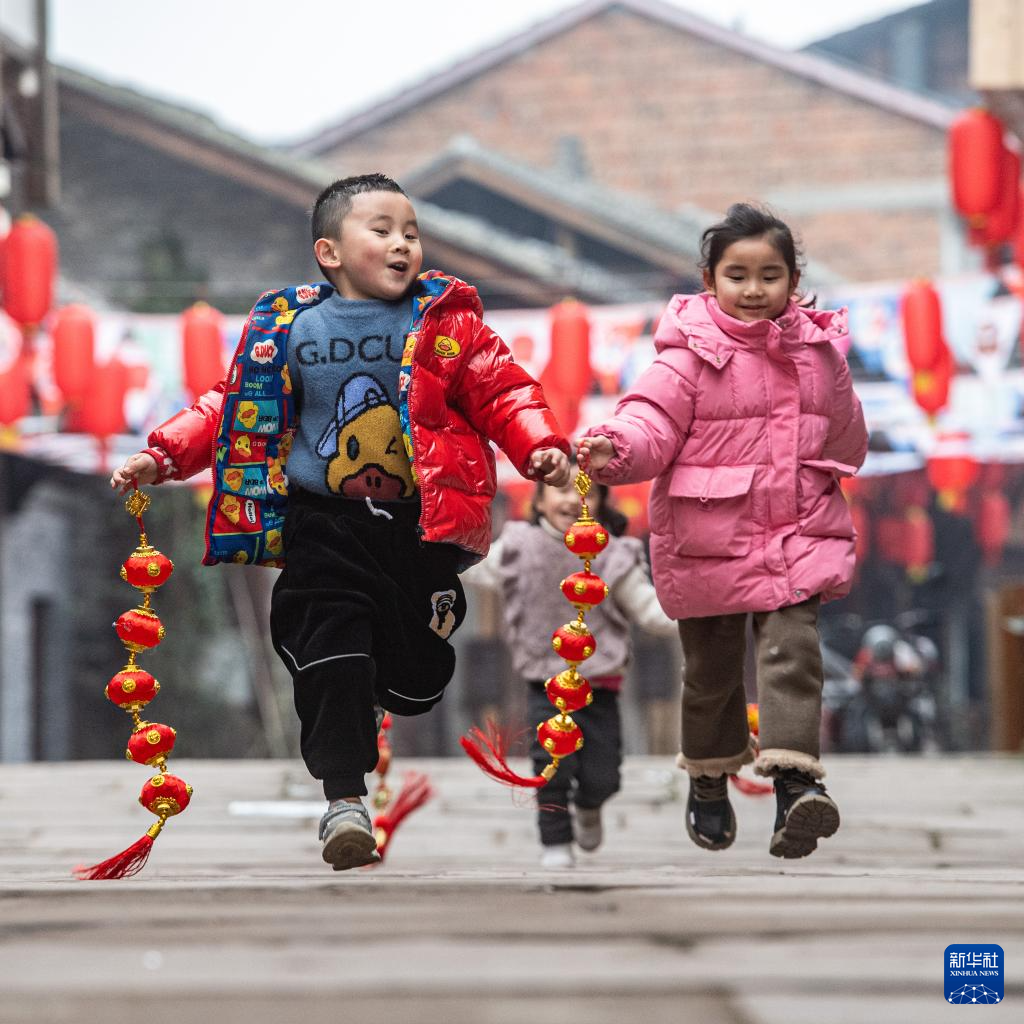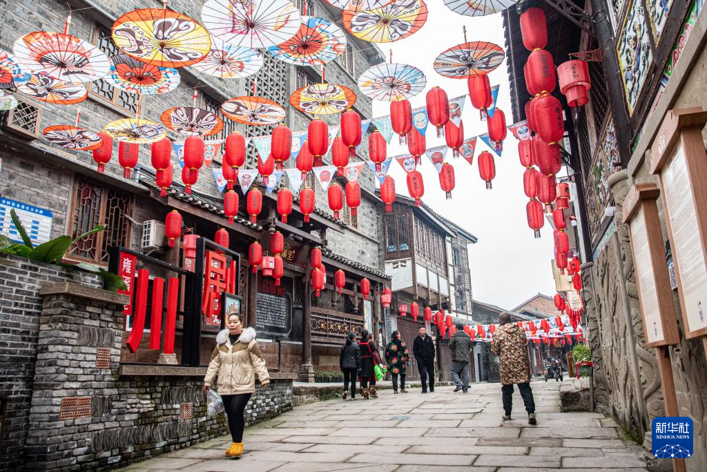 春節臨近,位于重慶市大足區的雍溪古鎮老街張燈結彩,喜迎新春佳節。