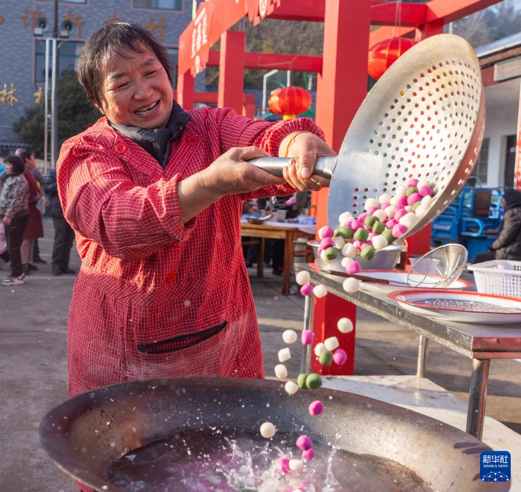 1月31日,浙江省諸暨市東和鄉大林村的村民在迎新春活動中煮湯圓。
