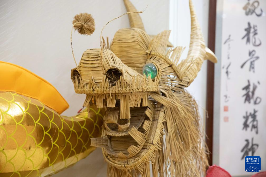 1月30日在南昌市青云譜區城南龍燈工廠拍攝的用稻草編制的傳統城南龍燈。