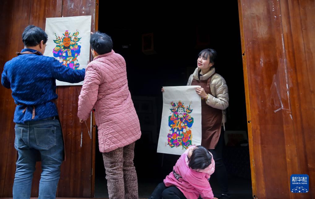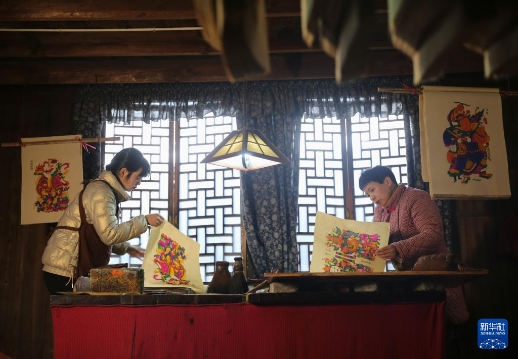 新春佳節臨近,在湖南省邵陽市隆回縣,灘頭木版年畫藝人忙著印制年畫供應春節市場。灘頭木版年畫于2006年被認定為首批國家級非物質文化遺產。