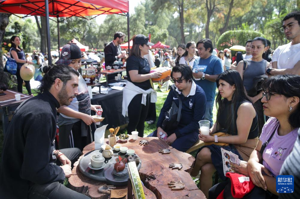 2月3日,當地民眾在墨西哥首都墨西哥城國家藝術中心舉行的第三屆中國新年文化節上體驗中國茶藝。