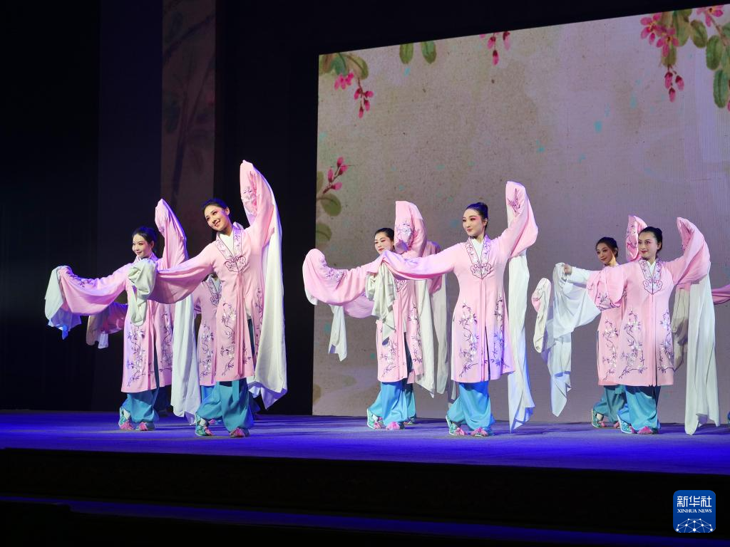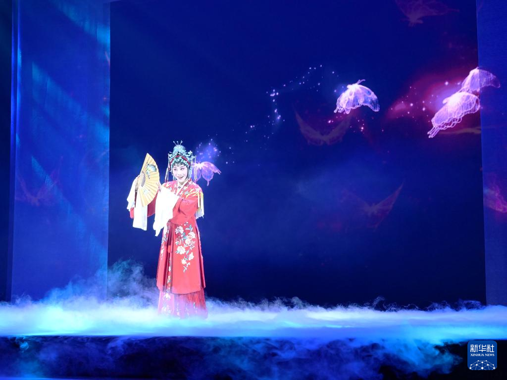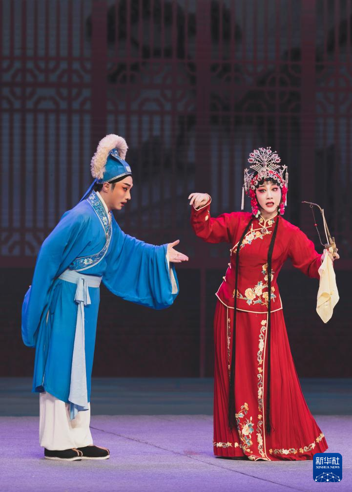 中國戲劇梅花獎獲得者陳瓊(右)在《王蓮蓮拜香》選段的表演中(2月5日攝)。