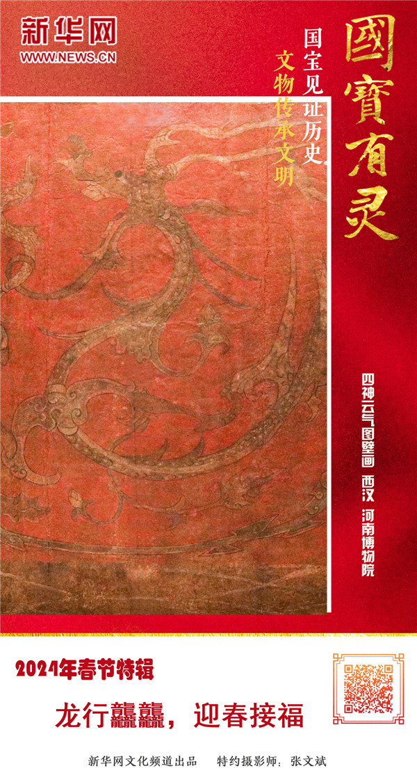 編者按:又是一年年關將至,新春的腳步聲已經越來越近了。新華網文化頻道特攜“國寶有靈”文化IP推出2024年新春特輯《龍行龘龘 迎春接?!?,精選了九件帶有“龍”元素的國寶珍品,制作成了一組精美的海報?!褒垺笔侵腥A民族的精神圖騰,中國龍文化的歷史可謂源遠流長,希望這組龍年“龍”海報能為您帶來吉祥,讓您在感受到喜慶祥和的年節氣氛之余,也能體會到中華優秀傳統文化的獨特魅力。新華文化在此祝您新春快樂!事業蒸蒸日上!闔家幸福安康!