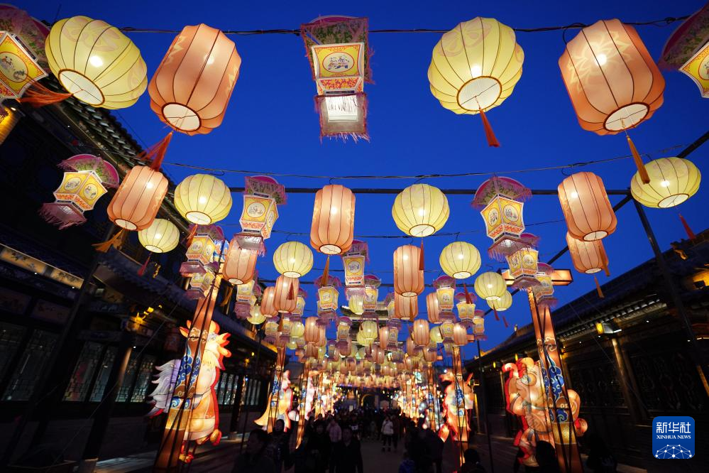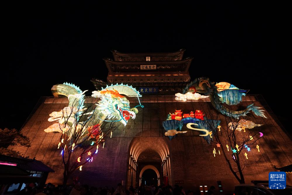 春節期間,在山西省太原市晉源區太原古縣城舉辦的“錦繡太原中國年·鳳舞龍城花燈會”上,各類花燈流光溢彩、璀璨奪目,吸引眾多游人前來觀賞。