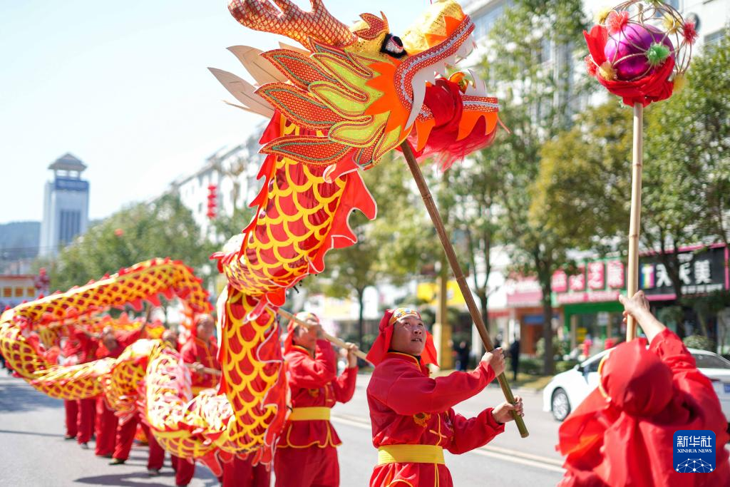 當日,貴州省黔東南苗族侗族自治州黃平縣各鄉鎮群眾身著盛裝,歡聚一堂,舉行舞龍、花燈、舞獅、巡游等傳統民俗活動,祈盼新的一年風調雨順、五谷豐登。據悉,每年農歷正月初九,是黃平縣傳統龍燈會亮燈的日子,活動將持續到元宵節。