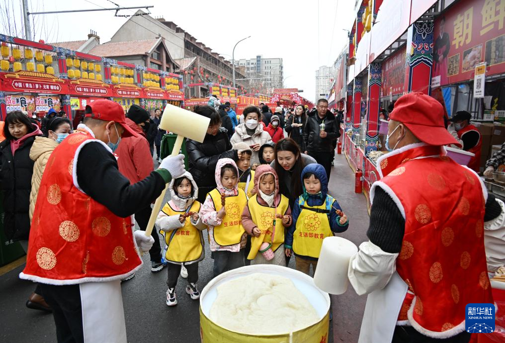 2月18日,小演員在蘿卜·元宵·糖球會上品嘗糖球。