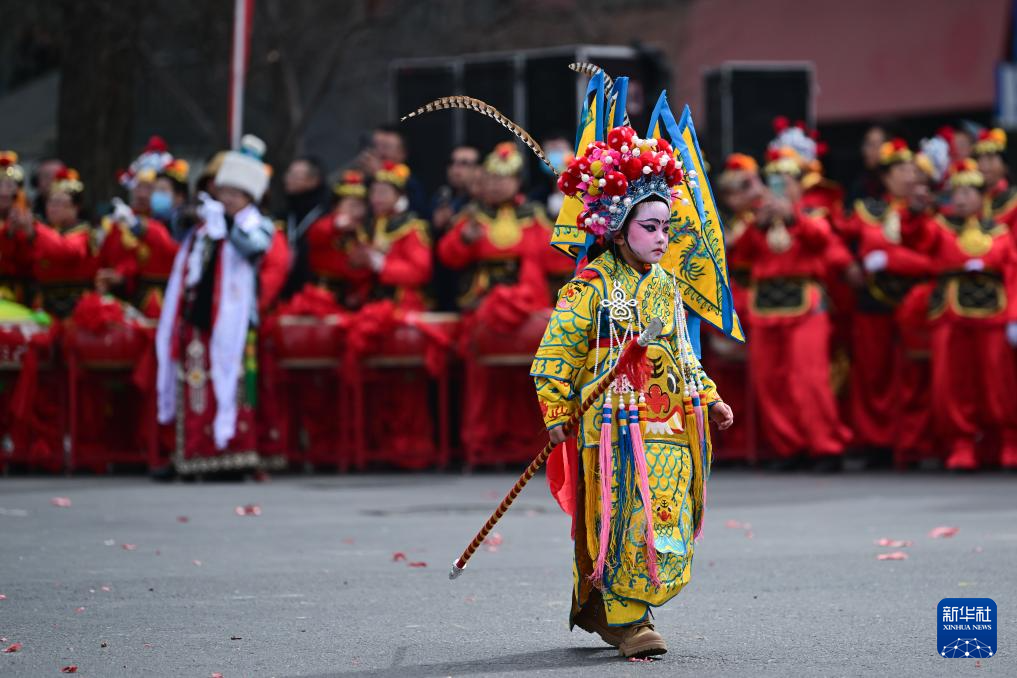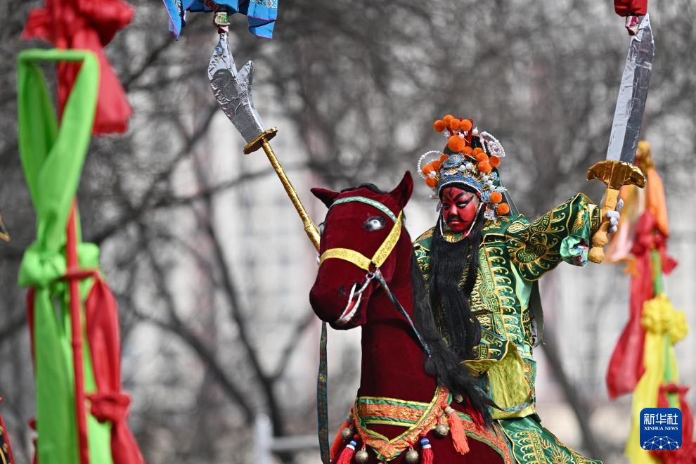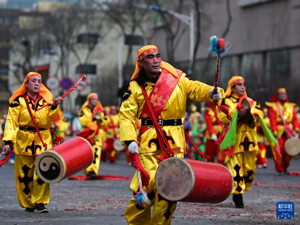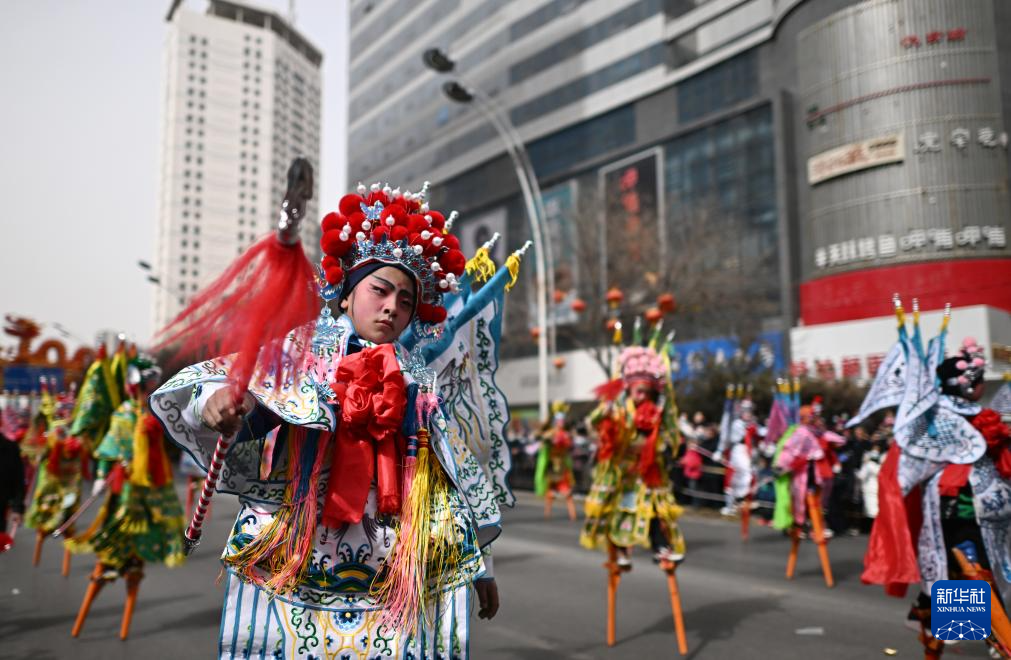 2月19日,在青海省西寧市,演員在社火巡游活動中表演。