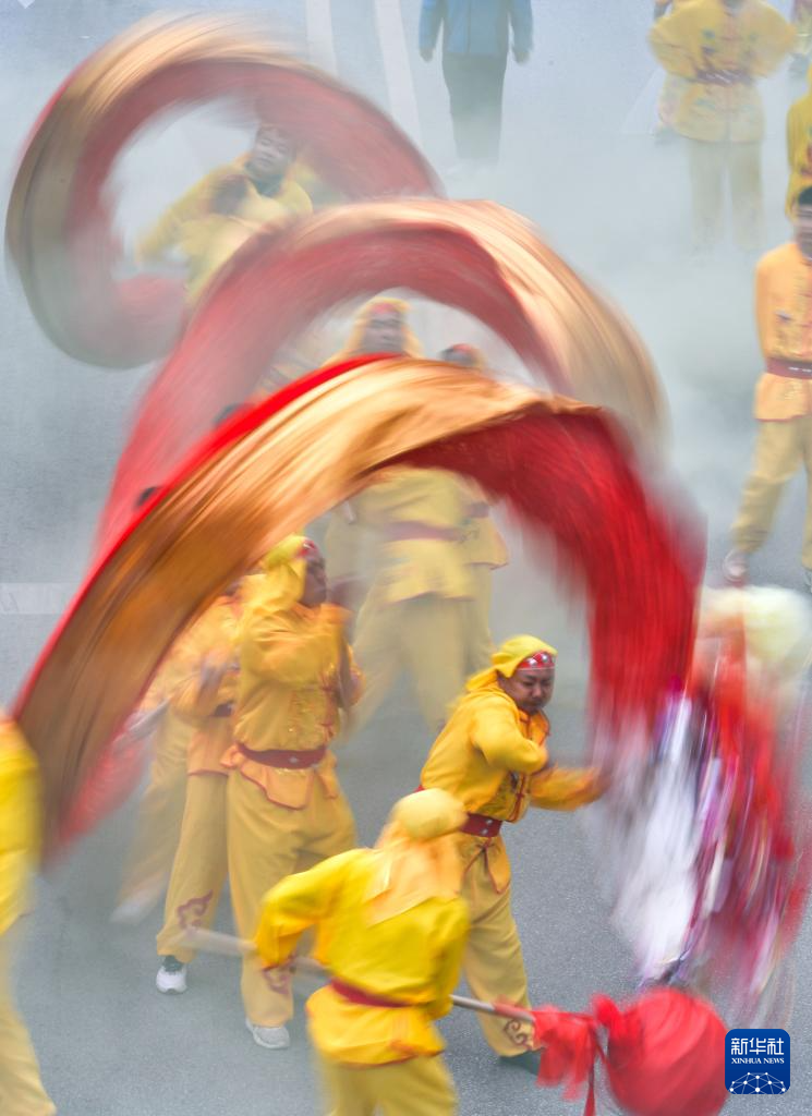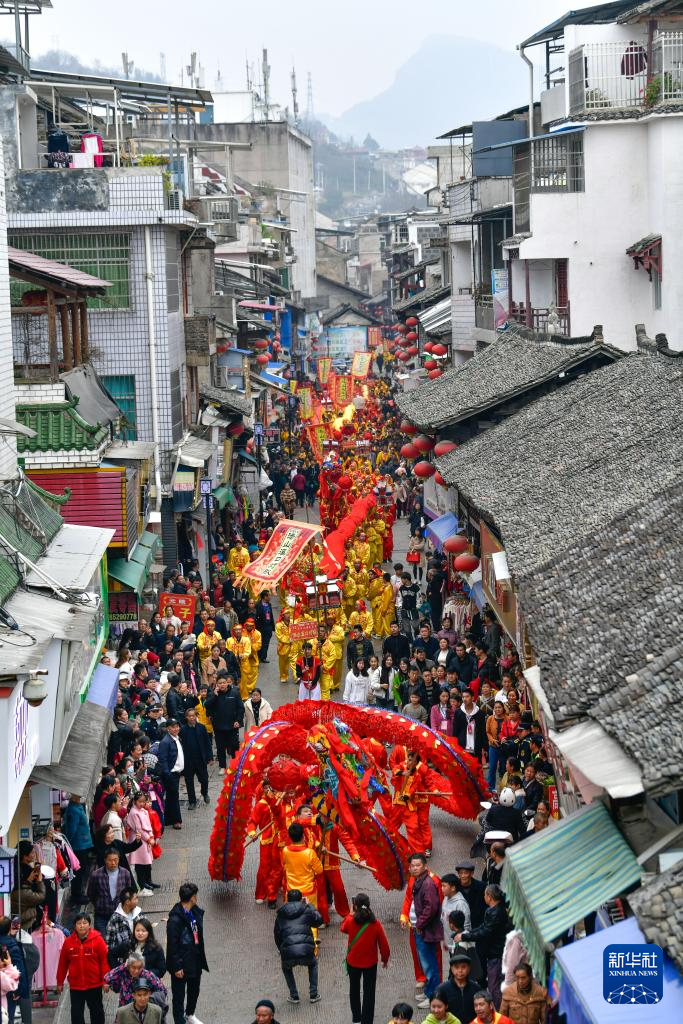 2月20日,人們在貴州省石阡縣仡佬毛龍節上參加毛龍巡游。