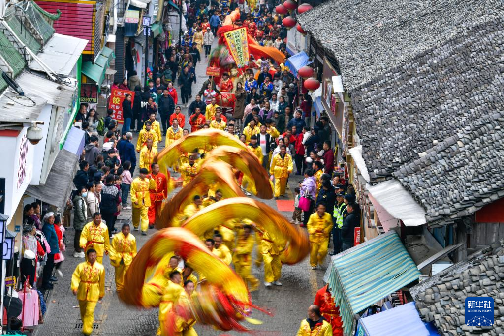 當日,貴州省石阡縣舉辦“龍騰盛世·錦繡阡城”為主題的仡佬毛龍節賀新春活動,來自全縣各鄉鎮的近百支毛龍隊、花燈隊齊聚石阡縣城,舉行毛龍巡游、毛龍點睛、舞龍大賽等活動,歡慶毛龍節,喜迎新春。