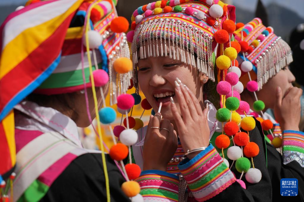 2月20日,在盈江縣蘇典鄉闊時節活動上,一名女孩在化妝。