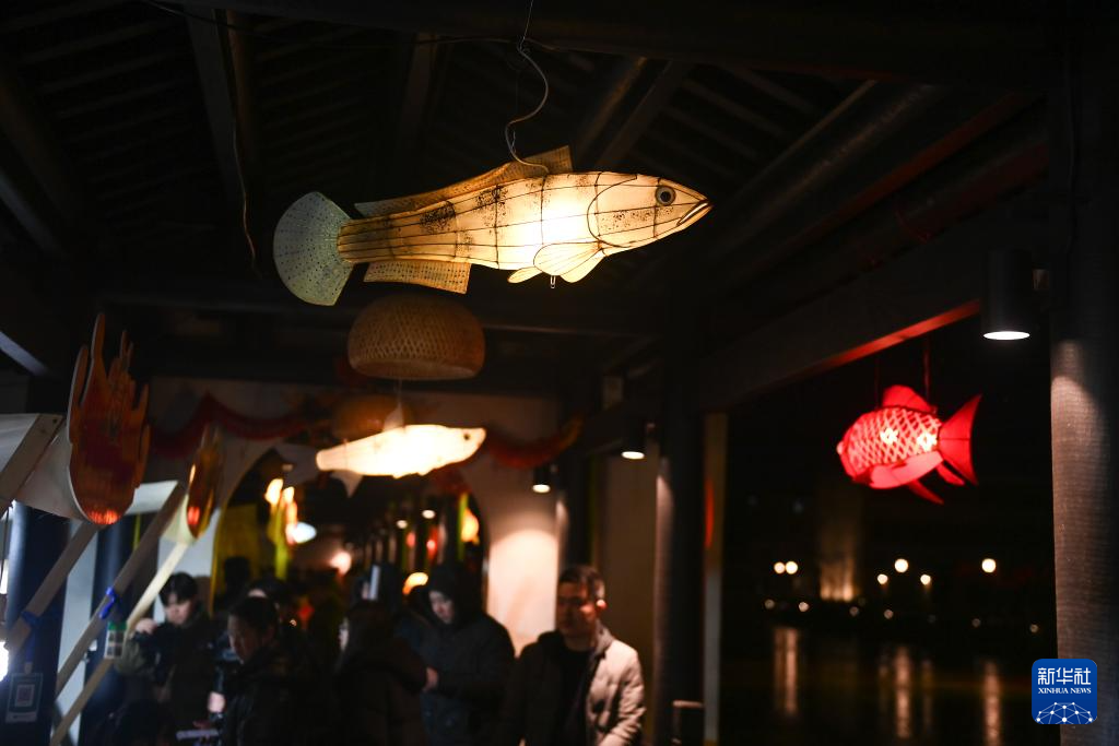 當日,浙江省湖州市南潯區菱湖鎮在秀溪水街舉辦元宵民俗文化節,現場設有傳統手工彩燈展、燈謎猜射等活動,營造濃郁的節日氛圍。