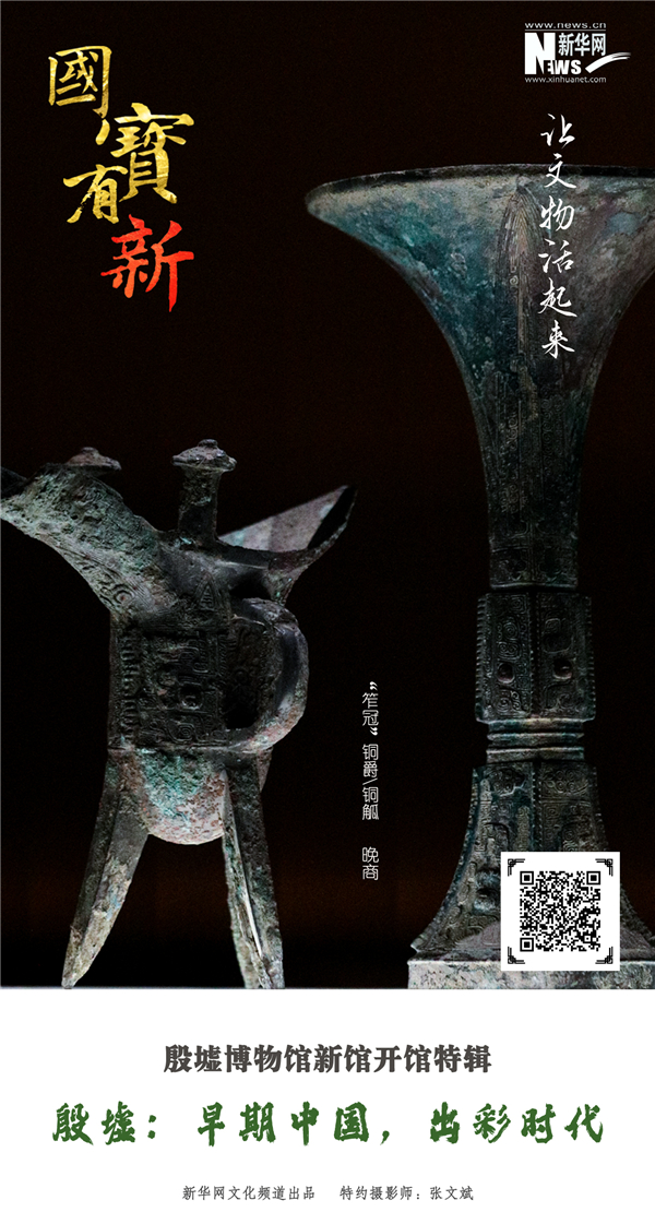 值此新館正式開放之際,新華網文化頻道特推出全新獨家原創文化IP【國寶有新】特輯《殷墟:早期中國 出彩時代》,精選了九件極具代表性的殷墟文物,制作成精美海報,帶您集中領略與感知這神秘而古老的殷商文化。
