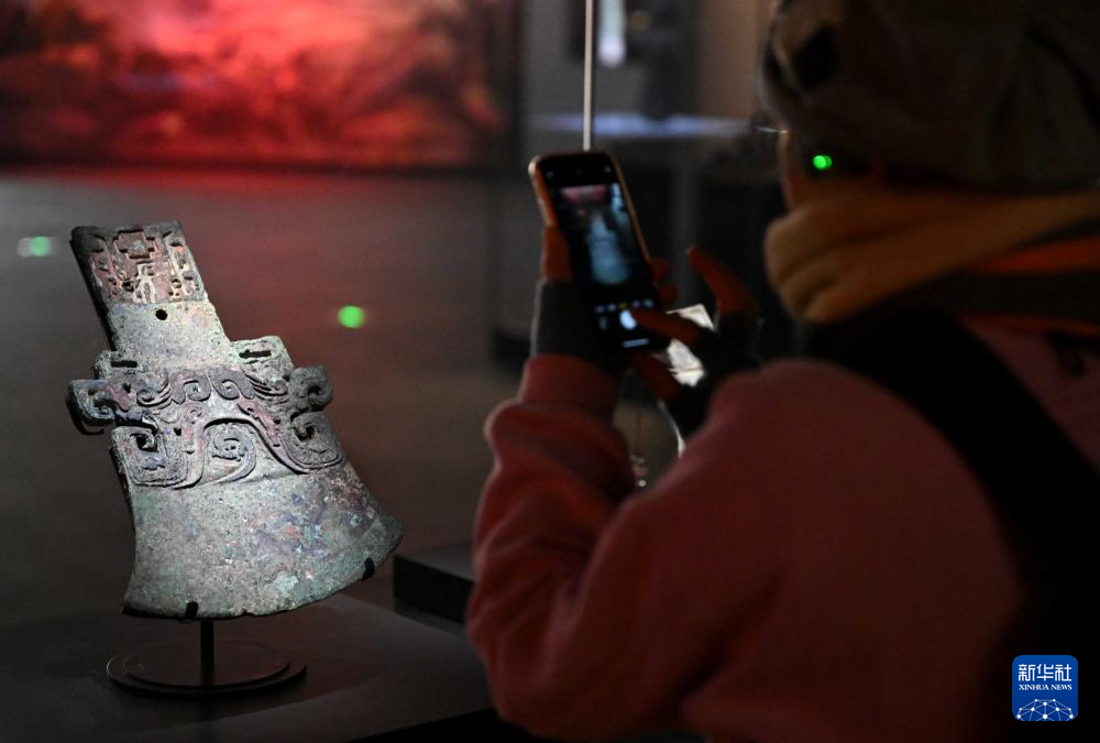 2月26日,參觀者在河南安陽殷墟博物館新館內拍攝展品。