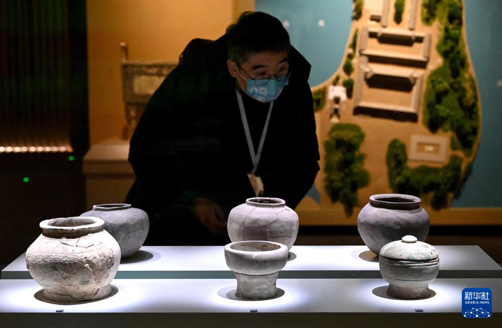 2月26日,參觀者在河南安陽殷墟博物館新館內觀看展品。