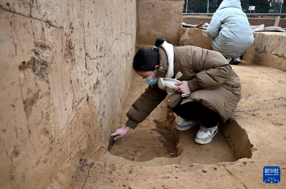 工作人員在河南安陽殷墟王陵遺址進行發掘作業(2024年2月24日攝)。新華社記者 李安 攝