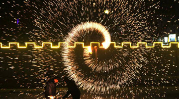 2月27日,在澳大利亞堪培拉中國駐澳大利亞大使館,來自西安的藝術家表演噴火。